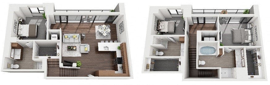 Every apartment combines modern luxury with practical comfort, featuring smoked oak flooring, private terraces, and luxurious soaking tubs. Whether you’re relaxing at home or entertaining, these thoughtfully designed floorplans are your retreat from the lively city.