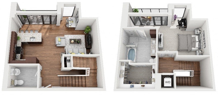 Every apartment combines modern luxury with practical comfort, featuring smoked oak flooring, private terraces, and luxurious soaking tubs. Whether you’re relaxing at home or entertaining, these thoughtfully designed floorplans are your retreat from the lively city.