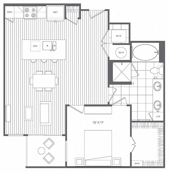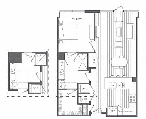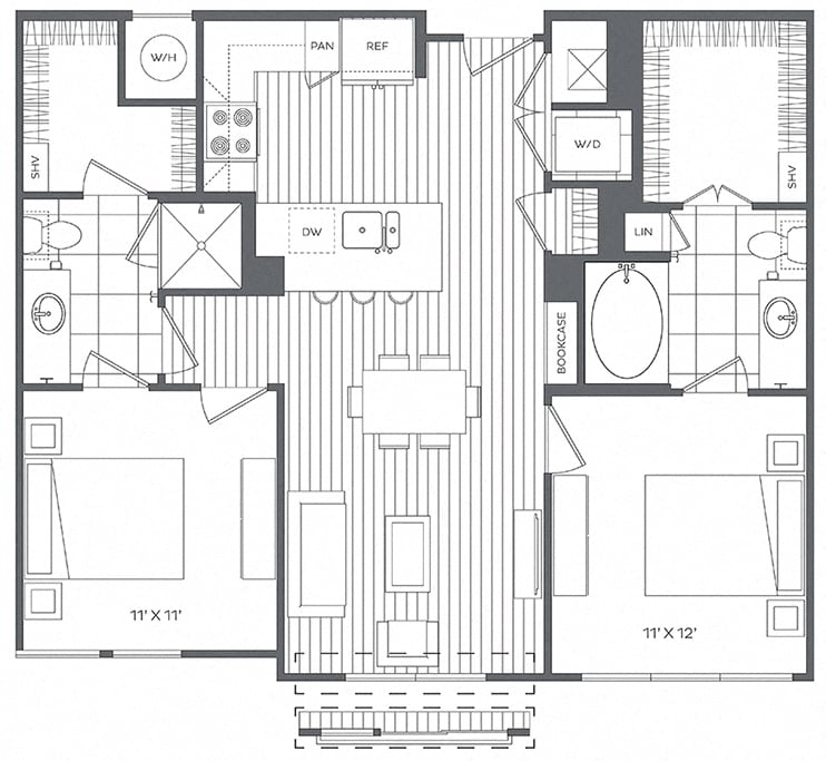 Platt Park by Windsor offers a selection of thoughtfully designed one-, two-, and three-bedroom apartments, each featuring open-concept layouts and modern finishes. Spa-inspired bathrooms and gourmet kitchens with granite countertops, custom cabinetry, and stainless steel appliances—including stunning French door refrigerators—create an upscale living experience.