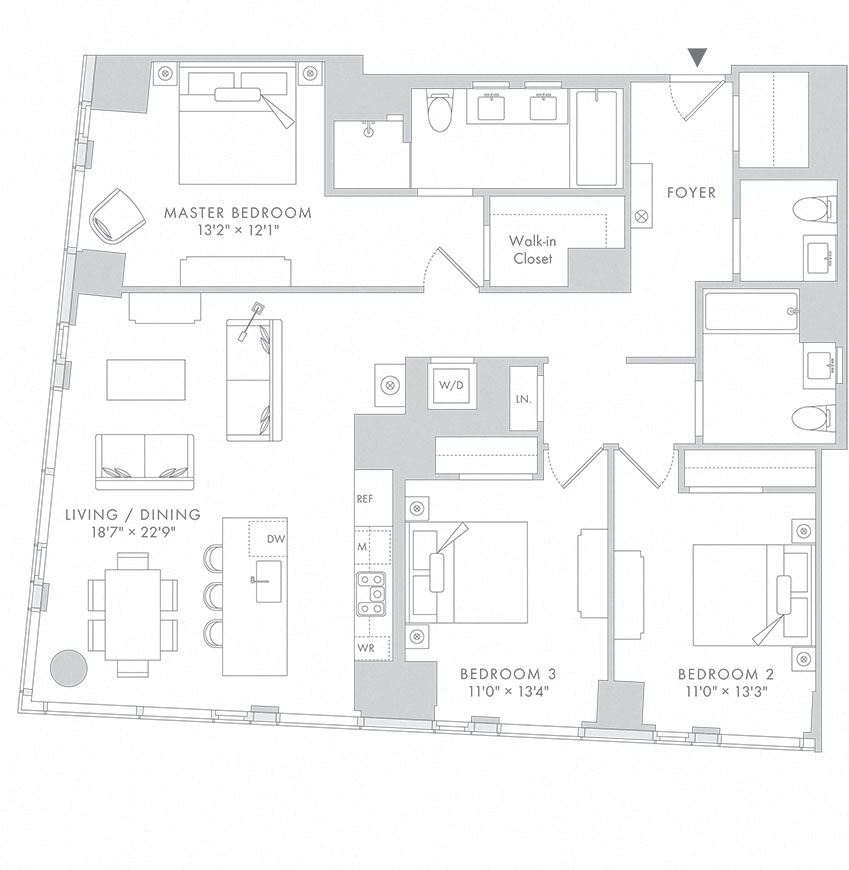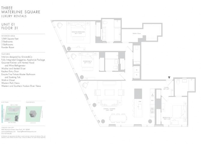 Waterline Square by Windsor offers a stunning collection of studio to four-bedroom luxury residences, each designed with expansive layouts and top-tier finishes. Gourmet kitchens feature integrated appliances and custom cabinetry, while spa-inspired bathrooms are clad in marble finishes for a refined touch. Floor-to-ceiling windows frame breathtaking views of the Hudson River and Manhattan skyline, creating an awe-inspiring living experience.