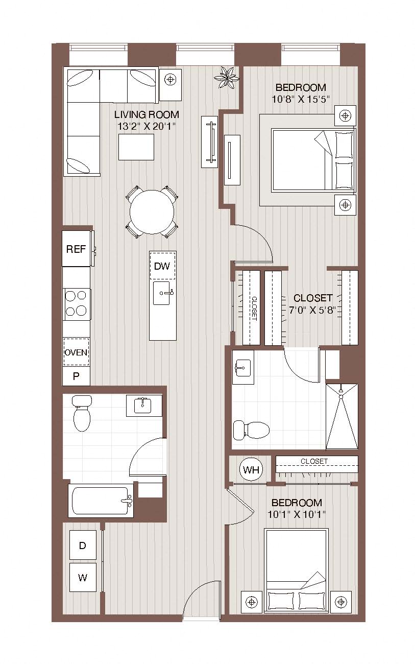 Find a floor plan that fits your lifestyle at Windsor Radio Factory. Whether you choose a cozy studio or an expansive three-bedroom apartment, every home is designed with elegance and comfort in mind. Soaring ceilings, exposed brick walls, and oversized windows create a stunning ambiance, while gourmet kitchens with quartz or granite countertops and sleek appliances make every meal a delight. Select layouts include private balconies, spacious walk-in closets, and wood beam ceilings, ensuring your home feels as unique as you are.